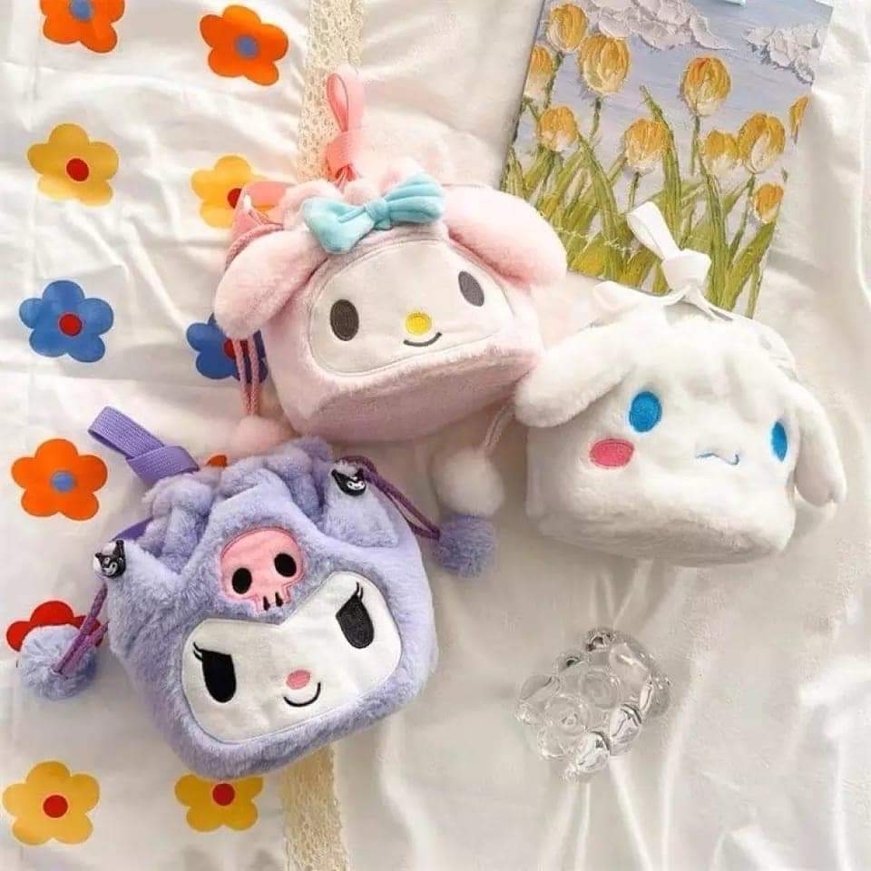 Bolsa de peluche Kawaii con pompones