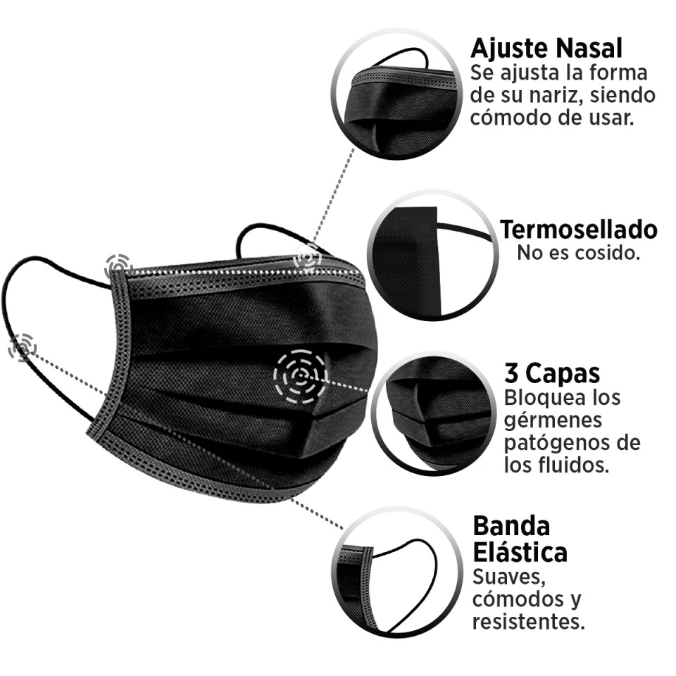 Cubrebocas Tricapa negro y Azul (50 pzas) $25 Caja $20 Docena
