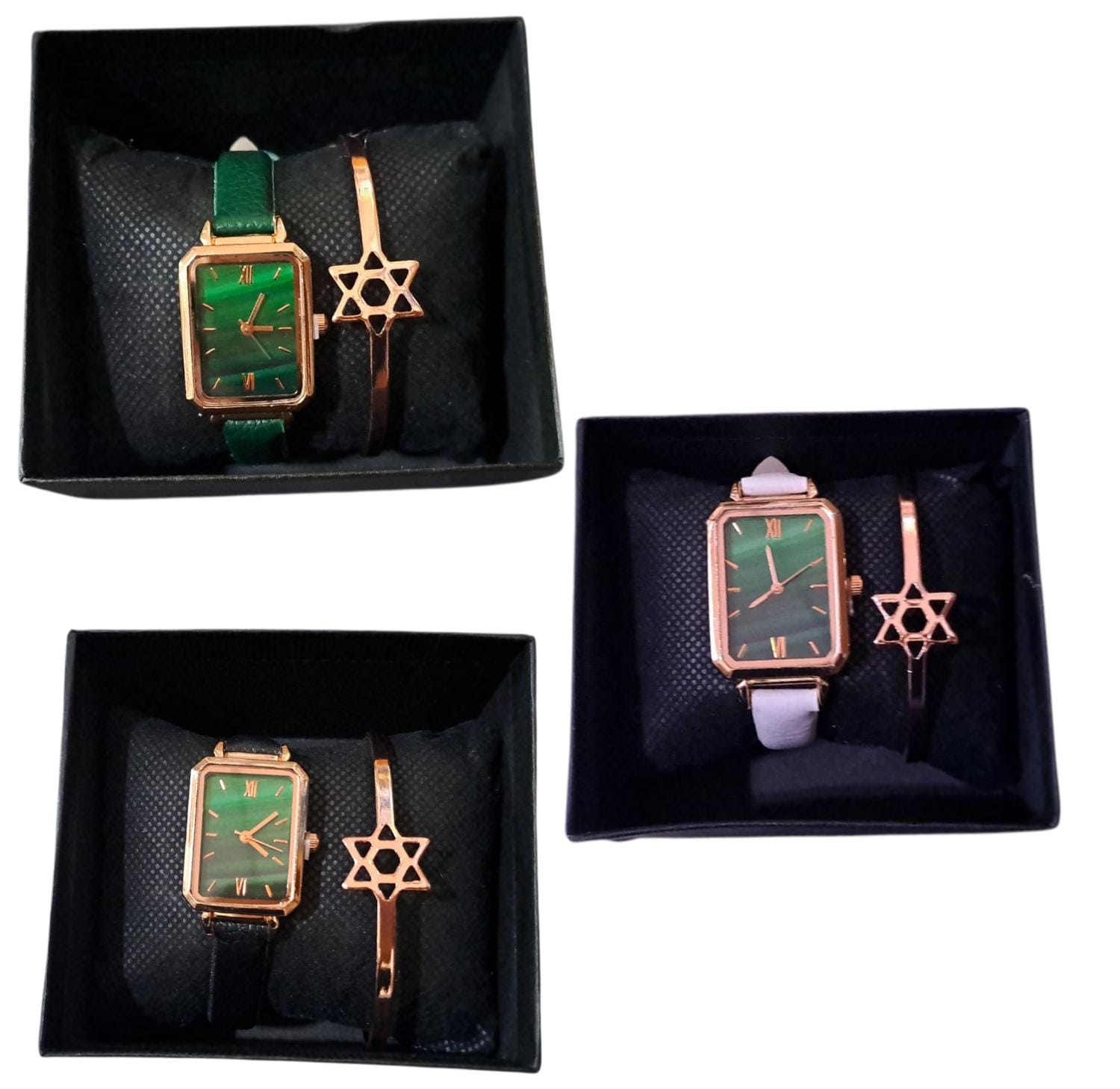 Reloj con brazalete aretes y anillo