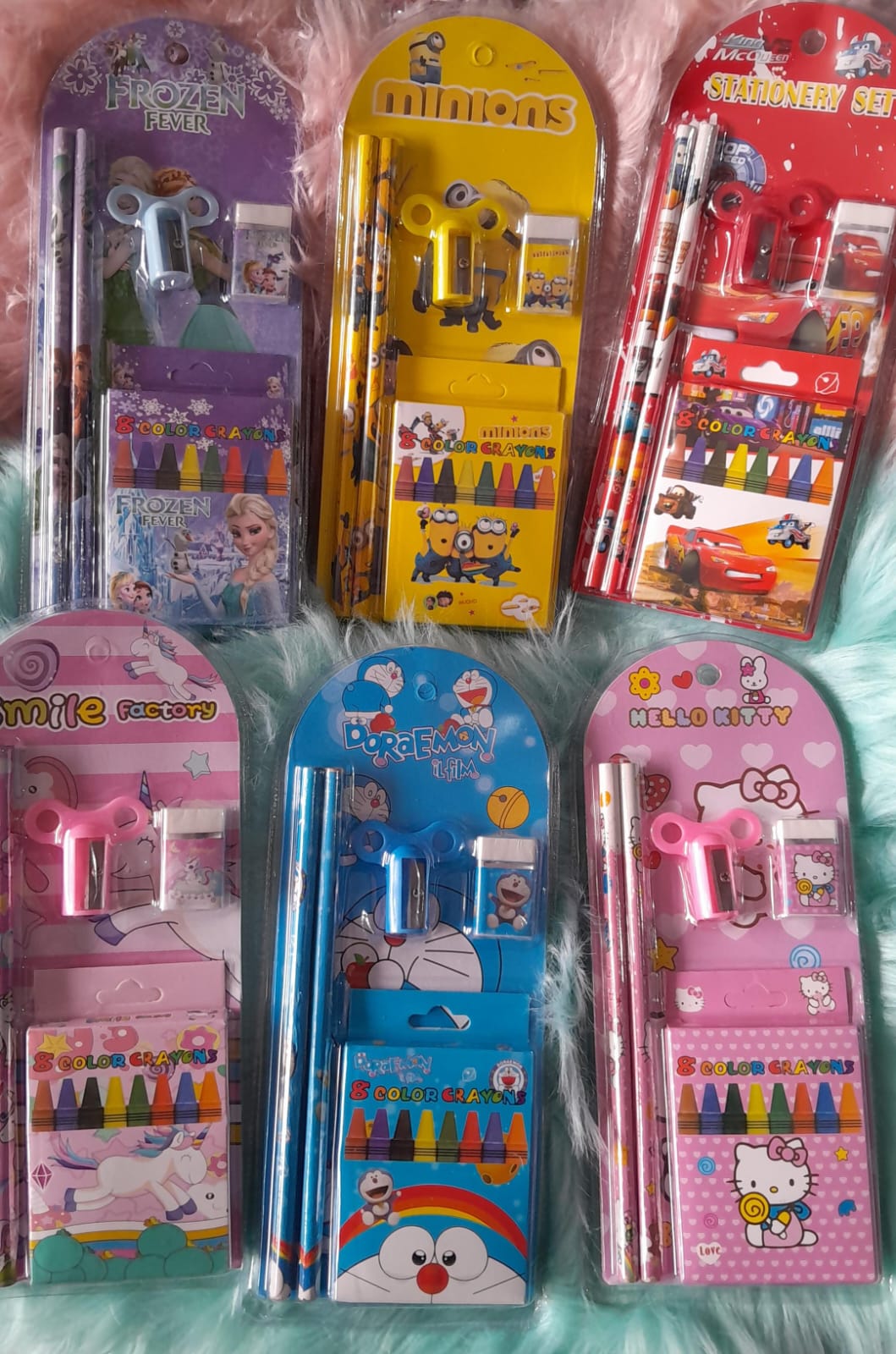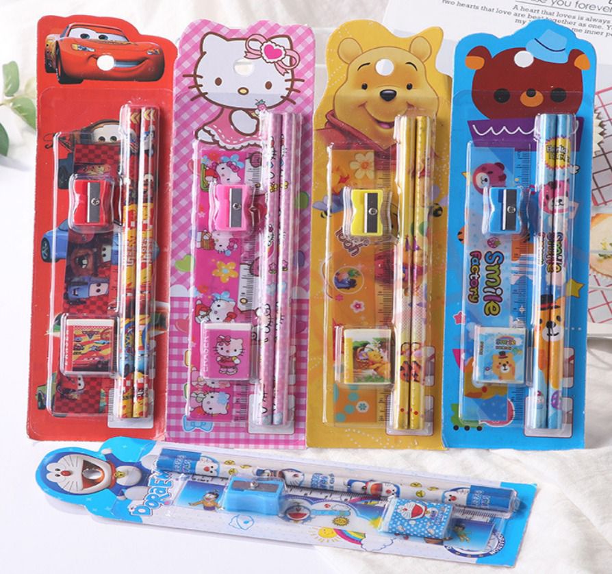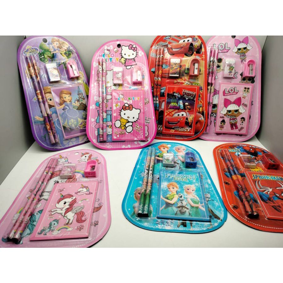 set de lápiz goma sacapuntas y crayolas